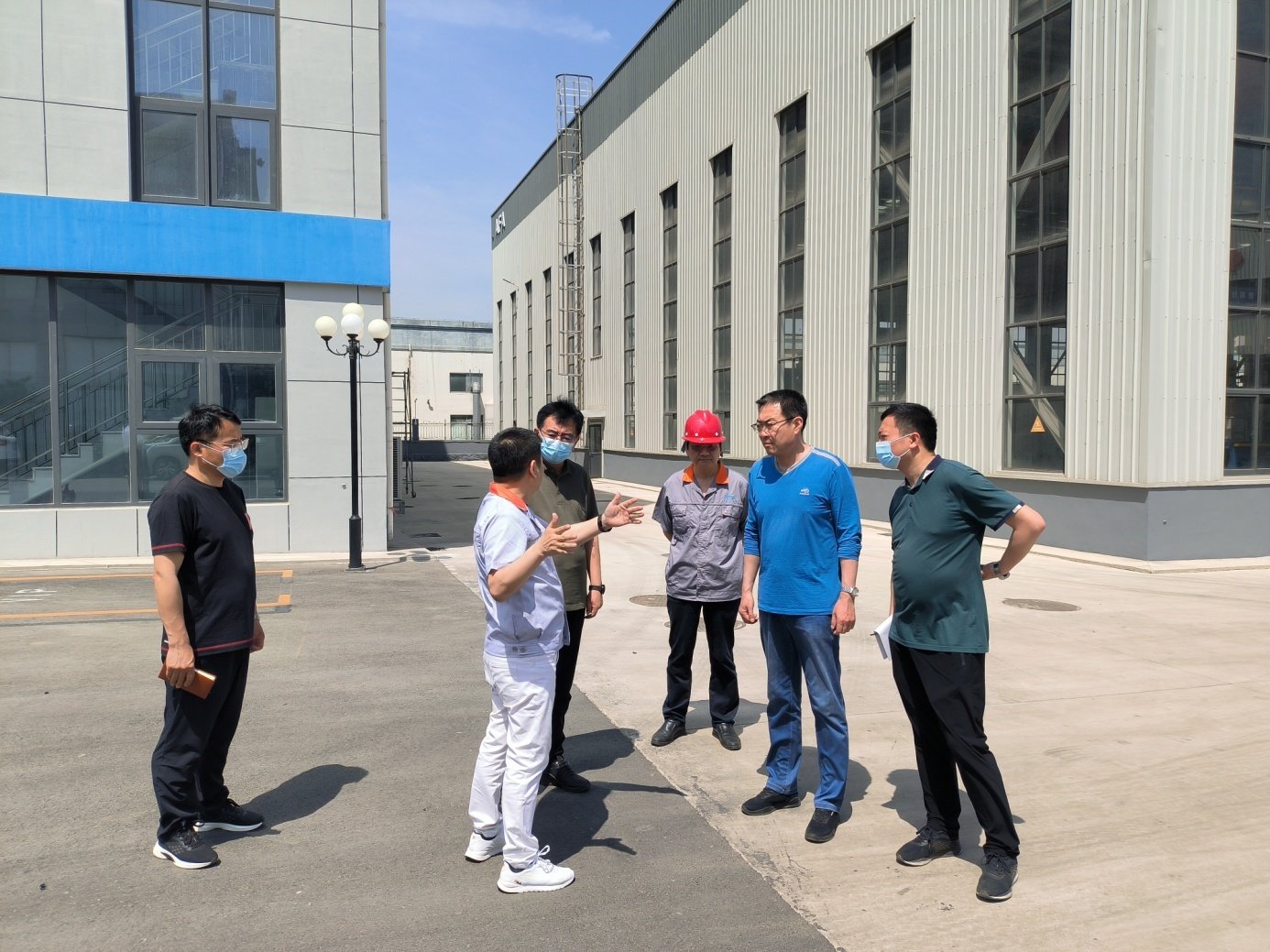公司董事长谢正泽和公司其他领导陪同管绍波书记一行深入生产车间、办公楼、员工公寓、食堂等场所进行了参观检查,并简要汇报了公司生产经营、技术研发、市场前景、疫情防控和员工生活等相关情况。