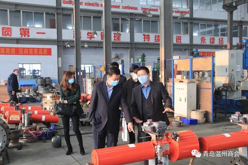 根据青岛市工商联工作部署和商会年度工作安排,3月30日,青岛市温州商会法律顾问团、商会人民调解委员会组成温州商会“法律体检”公益服务组(第一组),由山东建林律师事务所林银建主任带队,商会人民调解委员会委员王雪主任、法律顾问团韩志刚律师、陈鑫豪律师,商会执行秘书长兼办公室主任于鹏一行5人,走进西海岸铁山工业园jinnianhui今年会流体控制有限公司进行法律服务,对复工复产企业进行惠企政策宣讲,对法律助企进行座谈调研,帮助企业查找生产经营中的法律制度漏洞,做好法制助企各项工作,推动企业健康稳定发展。